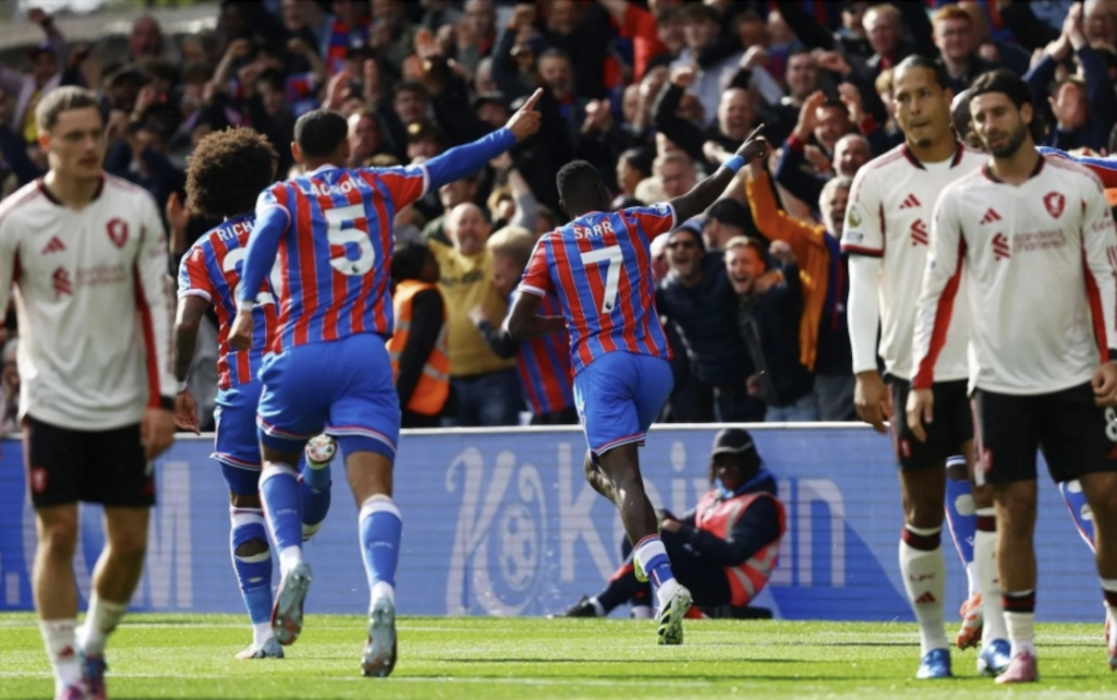 Ngay từ đầu trận, đội chủ nhà đã nhập cuộc đầy hứng khởi. Phút thứ 9, Ismaila Sarr nhanh chân dứt điểm sau tình huống bóng bật ra trong vòng cấm, mở tỷ số 1-0 cho Palace. Bàn thua sớm khiến Liverpool lúng túng và dù nỗ lực đáp trả, họ vẫn tỏ ra bế tắc trước hàng thủ được tổ chức tốt của đối phương.