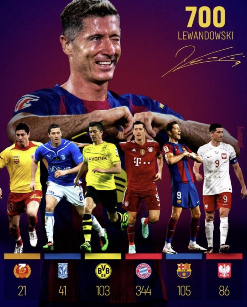Chân sút Ba Lan cũng chạm mốc 700 bàn thắng trong sự nghiệp.